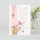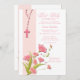 A lovely floral design featuring a spray of pink alstroemeria against a white background. The pink vertical ribbon features a pink ROSARY WHICH CAN BE ELIMINATED making this a versatile invitation not only for religious events but for any feminine celebration. (VM)