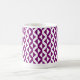 A mug with an alternating decorative hard edged geometric shapes creating an interesting alternating zigzag line pattern.