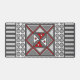 This concentric square mandala features simple geometric patterns in shades of grey and red with the colours in the layers alternating when switching from the vertical to the horizontal.