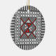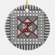 This concentric square features simple geometric patterns in shades of grey and red with the colours in the layers alternating when switching from the vertical to the horizontal.
