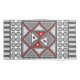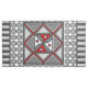 This concentric square features simple geometric patterns in shades of grey and red with the colours in the layers alternating when switching from the vertical to the horizontal.
