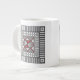 This concentric square features simple geometric patterns in shades of grey and red with the colours in the layers alternating when switching from the vertical to the horizontal. This mug is available in jumbo, espresso, and bone china sizes and styles.