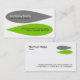 A stylish business card template with an alternating petal or comet like motif, very space age. Main motif on the front incorporating company name and address. Name and other contact details on the back along with a smaller version of the main motif used as a decorative logo style feature. The text and logo on the back are spaced 1/4 inch from the margins to give a nice balance of white space.