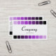 A stylish modern business/profile card template. Edged top and bottom with a row of nine round cornered squares going from a light purple to black. Company details on the front with name and contact details on the back.