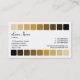 A stylish modern business/profile card template. Edged top and bottom with a row of nine round cornered squares going from a light yellow brown to black. Company details on the front with name and contact details on the back.