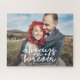 Honour your loved one with this personalised jigsaw puzzle featuring a full bleed picture of your big day with the overlaying caption "Always and forever" and your names in white modern fonts decorated with two little hearts.