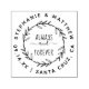 This stamp is ideal for any couple looking for a mailing accessory for their wedding cards. This design features your names, wedding date and wedding location in a circle around the outside of the stamp with a frame of rustic, hand-drawn leaves inside surrounding some rustic typography that reads "Always and Forever" in a blend of rustic script and all-caps lettering. Click the "personalise" button at the top to add your own details and then be sure to check the best size for your needs!