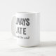 Simple Black and White Coffee Mug reading "Always late but worth the wait". Perfect gift for the person in your life who is always late. Design is transferable to a variety of different mug styles and sizes.