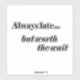 Are you always running late? Let everyone know why you are being that person on the road with this decal sticker.