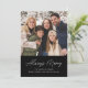 Simple holiday card featuring your family's photo at the top of the design. The phrase "Always Merry" is displayed in a handwritten white script with a black background. The photo Christmas card reverses to display the year in white lettering with an additional photo.