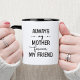 Mum will cherish this simple black and white coffee mug that says "Always my mother, forever my friend." Adorned with hearts and arrows, this adorable mug makes a perfect keepsake gift for Mother's Day or any special occasion. Order yours today!