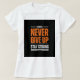 "Never give up" embodies a mindset of relentless perseverance and determination, even in the face of adversity. It means pushing through challenges and obstacles with unwavering commitment and resilience. This approach encourages maintaining focus on your goals, adapting to setbacks, and continually striving towards success, regardless of difficulties or failures along the way.