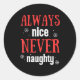 Always Nice Never Naughty Funny Merry Christmas Classic Round Sticker