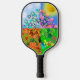 Winter, Spring, Summer, or Fall all you gotta do is call and I'll be there to play pickleball. Fun colourful pickleball paddle for yourself, your pickleball-loving friend, mum, dad, uncle, aunt, brother, sister, neighbour, grandpa, grandma, or work buddy who won't stop talking about pickleball. A colourful tree filled with pickleballs showing colours of the seasons with winter snowflakes, sunny spring skies, summer flowers, and pickleball pumpkins with pickleball paddles leaning against a tree.