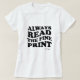 You're pregnant! Congratulations, now it's time for sharing your news with family, friends and co-workers. This modern chic Pregnancy announcement T-shirt are a great way to share your special news. Design feature with "Always Read The Fine Print", retro wave typography. Add your custom wording to this design by using the "Edit this design template" boxes on the right-hand side of the item or click the blue "Customise it" button to arrange the text, change the fonts and colours and to also add additional information or images to this design. Click "Customise Further" to open full editing options