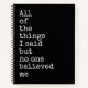 "All of the things I said but no one believed me" quote printed on this spiral bound notebook is the perfect humourous gift for someone who has great ideas or insight, but is not always heard.