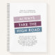 Always Take the High Road Motivational Quote Journalling Notebook... Taking the honorable or ethical action isn't always easy... but when you are unsure of what to do in a tricky situation... you can't lose by taking the high road. The saying text "Always Take the High Road" is overlaid on modern purple, mauve, and blue-grey stripes, with the beginning and ending text in black sans serif typography. Words and design by Barbara Casey, Inspirational Writer.