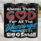 This grateful design emphasizes "Always Thank GOD For All The Blessings EVEN IF IT'S Big OR Small." The word "GOD" is highlighted with a heart inside, and "Blessings" flows in an elegant blue script, creating a visually appealing reminder of gratitude for both large and small gifts.