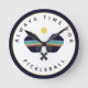 The pickleball player or fan in your life will love this clock featuring striped blue, teal, rust and yellow pickleball paddles and the phrase "Always Time For Pickleball." Part of a collection from Parcel Studios.