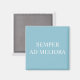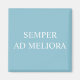 A magnet featuring the Latin phrase ‘semper ad meliora’. A popular phrase in Ancient Rome, the translation is ‘always towards better things’. It reminds us to focus on moving forward towards greater things without looking back. White lettering on a turquoise blue background.