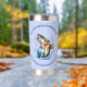 This fun insulated tumbler is just perfect for the avid fisherman! It has an illustration of a fish splashing in the water and it says "You are and always will be my first and greatest love, Dad" Background is light blue and a dark olive green version is also available in our shop.