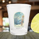 Shotglass from a wonderful skiing holiday in the beautiful mountains of Alyeska Resort, Alaska USA! This shot glass features an arch with a stunning blue-grey mountain landscape and retro ski boards in an orange tribal pattern in the foreground.