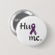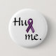 White button with Hug Me caption and purple Alzheimer's awareness ribbon