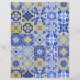 Mediterranean-inspired design with bright blue and yellow Italian Amalfi coast-style tiles with watercolor-painted lemons on yellow scooter.
