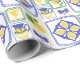 Amalfi Coast Italy Mediterranean featuring hand-drawn motifs of lemons, floral tiles, and rustic mugs in a fresh yellow, blue, and green palette, this design evokes sunny coastal vibes, 3 wrapping paper sheets. Perfect papers for all your gift, for wedding, birthday.... Bellissima Italia © PLEASE NOTE : Colours displayed online may vary slightly from the actual product.
