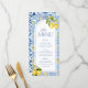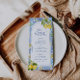 Inspired by the charm of the Amalfi Coast, this baby shower menu features watercolor lemons, Mediterranean tile patterns, and elegant blue typography. A stylish way to display your spread.