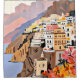 Amalfi Coast, Painting Nature Landscape Travel, Summer Romantic Scenic Pastel Colourful Places, Exotic Europe Mountains Hills Valley Beach Ocean Illustration by 83 Oranges Uma Gokhale.