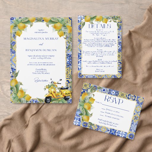 Amalfi Italian Blue Tile Scooter Lemons Wedding
