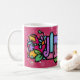 Amanda Custom painted coffee cup in lovely whimsical style. Painted to resemble stained glass in lush vibrant jewel tones. Swirls, curls, hearts, polka dots and flowers. Super personal and artsy.