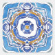 A blue, yellow and green ornamental design on a white background like seen on mediterranean tiles