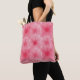 This tote bag has a mid-century modern design of starbursts in shades of amaranth.