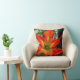 This Throw Pillow showcases the intense beauty of a flower, an Amaryllis blooming in the garden. The original photograph by ZoeSPEAK is a closeup, and the details of the flower, the shapes and color changes from the center outward are amazing. From soft shades of green blending into yellow, the bloom finishes with five outstretched petals in deep, rich oranges against a background of green leaves and muted brown wood.