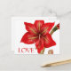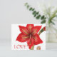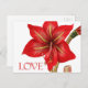 Bold red amaryllis Love greeting postcard by Gardenstyle has matching post card stamps.