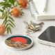 Elegant ,colourful seascape with red sun, sea waves in vibrant black,brown,white colours re-elaborated from an antique japanese miniature. Amaterasu is a part of the Japanese myth cycle and also a major deity of the Shinto religion. She is the goddess of the sun, but also of the universe. The name Amaterasu derived from Amateru meaning "shining in heaven." The meaning of her whole name, Amaterasu-ōmikami, is "the great August kami (god) who shines in the heaven".For Amaterasu is also credited with inventing the cultivation of rice and wheat, the use of silkworms and weaving with the loom.