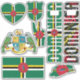 Amazing Dominica Shapes National Symbols Sticker. Two country name stickers, one in the colours of the national flag and the other one covered in the Word Cloud with the words "Dominica" written in the different alphabet forms and/or languages and fonts. All words are coloured with the national colours used on the flag of Dominica, Beautiful heart, shield (escutcheon) and map filled with the representation of the Dominica national flag. Hand sticker with the two fingers up, representing victory filled with the colours of the Dominica national flag. The last two stickers are national flag of the Dominica and the national Coat of Arms. This is the great set of superb stickers with most of them unique and hand drawn. All stickers are fully customisable using "Customise it!" feature. You can mix and match them as you wish. If you want multiple hearts but no shield fire away. Maybe you want only hand with the victory sign? Easy, remove everything else and make multiple copies of the hand. These grand stickers are the perfect sticky gift for any occasion. Fire away and stick them where your heart desire! © 2022 CountriesOfTheWorld
