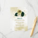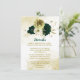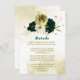 Beautiful emerald green ivory white and gold flowers with gold leaves botanical details enclosure card.