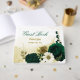 Beautiful emerald green ivory white and gold flowers with gold leaves botanical guest book.