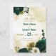 Beautiful emerald green ivory white and gold flowers with gold leaves save the date invitation.