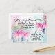 Christian postcard depicts a beautiful floral watercolor with pink flowers on a blue background. It features the beloved Christian Hymn, "Amazing Grace, how sweet the sound that saved a wretch like me! I once was lost, but now am found, was blind, but now I see." The greeting, prayer can be personalised or deleted for a hand written message.