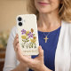 Amazing Grace Floral iphone 16 case with a beautiful modern wildflower design with purple and yellow spring flowers. Makes a great gift for Christian women. Creamy white background colour.