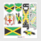 Amazing Jamaica Shapes National Symbols Sticker. Two country name stickers, one in the colours of the national flag and the other one covered in the Word Cloud with the words "Jamaica" written in the different alphabet forms and/or languages and fonts. All words are coloured with the national colours used on the flag of Jamaica, Beautiful heart, shield (escutcheon) and map filled with the representation of the Jamaica national flag. Hand sticker with the two fingers up, representing victory filled with the colours of the Jamaica national flag. The last two stickers are national flag of the Jamaica and the national Coat of Arms. This is the great set of superb stickers with most of them unique and hand drawn. All stickers are fully customisable using "Customise it!" feature. You can mix and match them as you wish. If you want multiple hearts but no shield fire away. Maybe you want only hand with the victory sign? Easy, remove everything else and make multiple copies of the hand. These grand stickers are the perfect sticky gift for any occasion. Fire away and stick them where your heart desire! © 2022 CountriesOfTheWorld