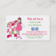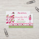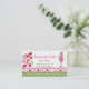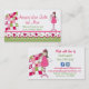 Pretty quilting or sewing business card done with graphic artwork of a pink, green, and white scalloped edge, with hearts along the bottom of the card. A sweet angle holding a heart shaped flower and a colorful pink, white, and green quilt decorates the front and back of the business card. Text in pink and green is fully customizable to suit your business needs. Social icons, on the back can be deleted or changed. Matching products are available.