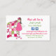 Pretty quilting or sewing business card done in graphic artwork of pink, green, and white, with cartoon angel and baby decorating the front. Matching products are available.