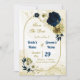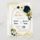 Beautiful navy blue ivory white and gold flowers with gold leaves geometric save the date invitation.
