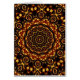 An attractive abstract kaleidoscopic mandala design in gold, fiery copper reds and black. Perhaps reminiscent of a domed ornamented ceiling of some kind of temple, cathedral or mosque. Some of the shapes look like the eye like motifs in peacock feather displays, Card is pale yellow inside (customisable) and has been left blank for your message or custom greeting.
