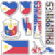 Amazing Philippines Shapes National Symbols Sticker. Two country name stickers, one in the colours of the national flag and the other one covered in the Word Cloud with the words "Philippines" written in the different alphabet forms and/or languages and fonts. All words are coloured with the national colours used on the flag of Philippines, Beautiful heart, shield (escutcheon) and map filled with the representation of the Philippines national flag. Hand sticker with the two fingers up, representing victory filled with the colours of the Philippines national flag. The last two stickers are national flag of the Philippines and the national Coat of Arms. This is the great set of superb stickers with most of them unique and hand drawn. All stickers are fully customisable using "Customise it!" feature. You can mix and match them as you wish. If you want multiple hearts but no shield fire away. Maybe you want only hand with the victory sign? Easy, remove everything else and make multiple copies of the hand. These grand stickers are the perfect sticky gift for any occasion. Fire away and stick them where your heart desire! © 2022 CountriesOfTheWorld